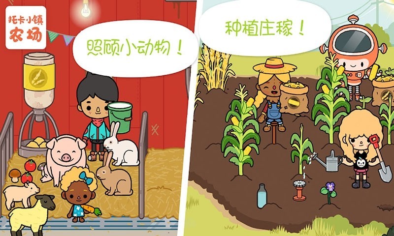 《托卡小镇农场生活》是一款模拟小镇生活的游戏。如果你向往宁静的田园生活,希望感受节奏慢的生活方式,那就来看看这个托卡小镇农场生活游戏吧。这个游戏中玩家可以打造自己的农场,利用自己的农场轻松赚钱。托卡小镇农场来体会模仿农民作业玩乐!能够给奶牛挤奶、去鸡窝收鸡蛋,还能栽培庄稼。弹弹吉他,躺到干草堆里睡上一觉!从日出到日落,托卡小镇农场为您带来只归于农场的快乐!感兴趣的朋友快来下载这款游戏吧。