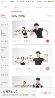 查看到运动健身的等级和对应课程资源,浏览分类;