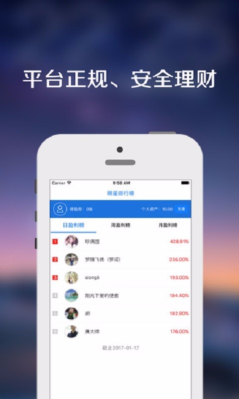 您还可以轻松的浏览投资收益排行榜,了解自己当天的收益排名情况;