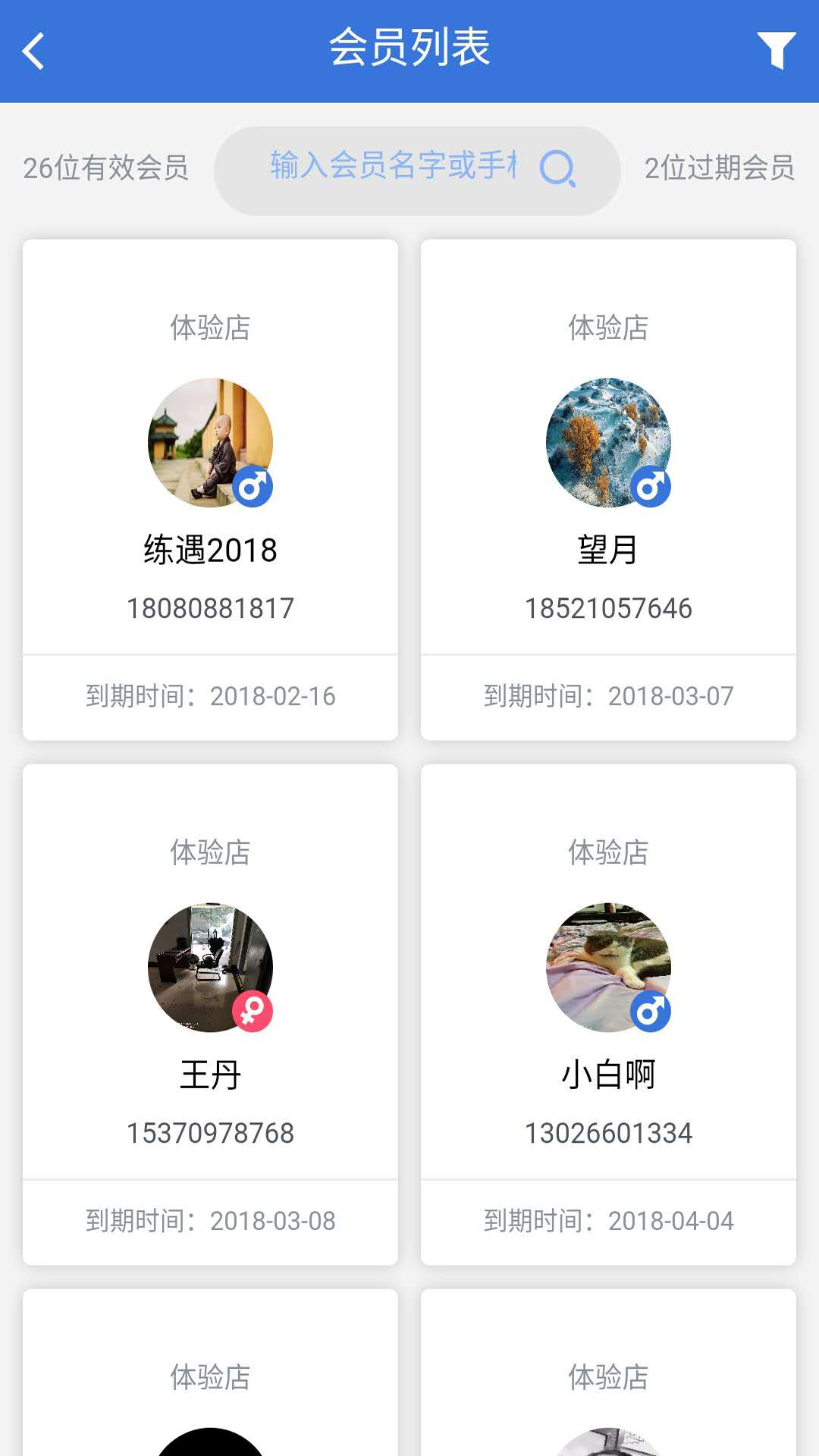 app会提供门店的会员信息,商家就能浏览各个会员的数据;