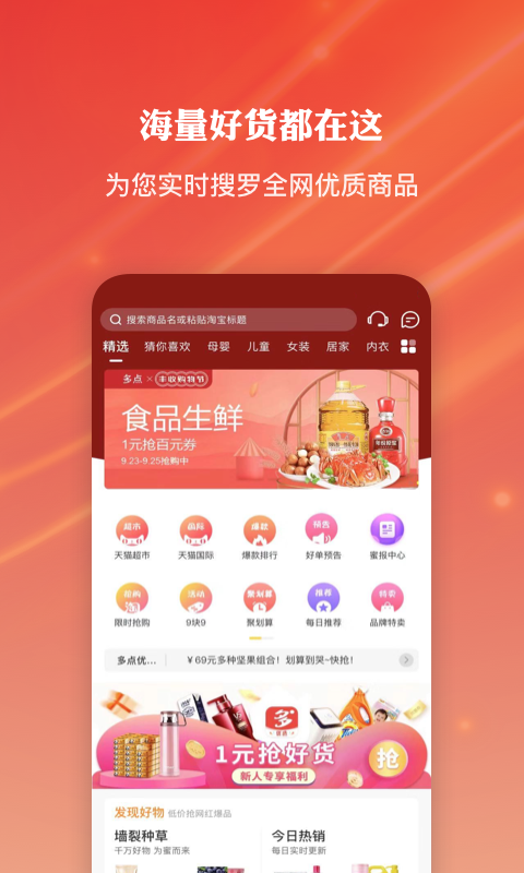 多点优选是一个汇聚生活达人,以好物推荐为主的综合型电商App,提倡只推好货,汇聚生活达人,为解决购买前购买后的一切问题,为用户提供了丰富的商品,价格也非常实惠,满足用户的日常购物需求,帮你购物更加省钱。每天还会发放大量的优惠券,折扣力度很大,让你尽享优惠。每天还有各种优惠活动,像九块九包邮、大牌折扣等各种优惠活动,是一款省钱必备的神器,喜欢的网购的用户不要错过哦!