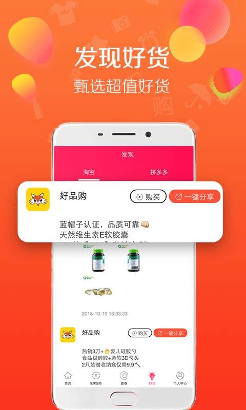 好品购APP千万用户首选的省钱工具,这款APP绝对是您省钱购物的最好选择,利用分享经济的移动导购模式,让您在其他平台购物的时候可以节省一半以上的购物成本,让您每个月可以大大的节省更多的购物资金;您在线还可以发现海量的大额优惠券,给您的购物增添更多的折扣优惠,真正的让您实现边购物、边省钱;喜欢网购的小伙伴千万不要错过哦,同时,这里还实时同步品牌官网资讯,各种优惠活动及时推送,海量商品等你来拿,还在犹豫什么,赶快来下载体验吧!