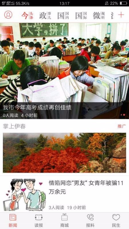 这里的新闻内容非常的多,以后用户就能在线开始阅读新闻了;