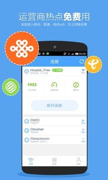 支持移动、联通、电信以及部分医院60,000,000+热点,覆盖全国。
