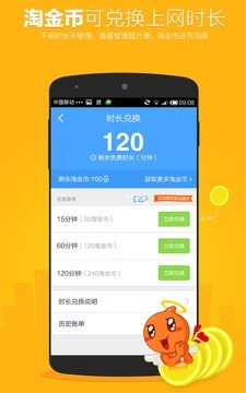 淘宝账号一键快速接入;每天可免费上网1小时;淘金币可兑换上网时长;