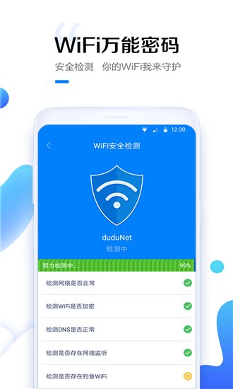WiFi万能密码云端所有热点均经过安全检测,您不必再担心是否有钓鱼WiFi,在这里你找到的WiFi都是安全的,放心连接,畅快使用WiFi上网吧;