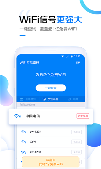 【加速】一键查询,秒速发现免费Wi-Fi热点,一键安全连接,操作简单,上网就是这么轻松。