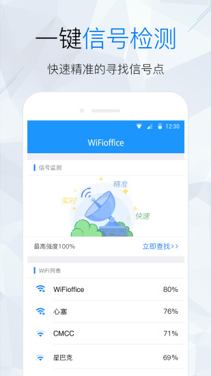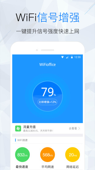 wifi增强信号器是一款市场上非常流行的WIFI连接管理软件;有五大主要功能:WiFi连接、WiFi测速、流量管理、WiFi测试、WiFi一键安检;