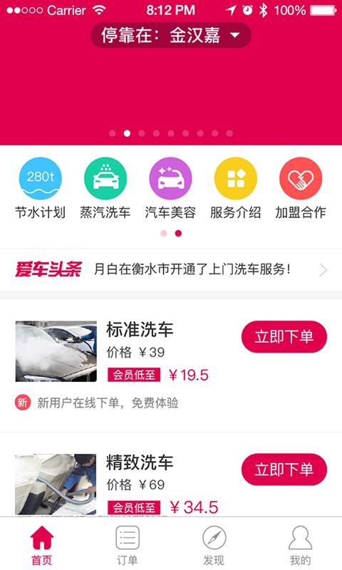 车主可以在任何时候在此下单而体验上门洗车服务,能够及时的解决洗车的问题;
