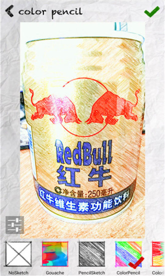 素描相机是一个简单有非常有用的工具。他可以提供数十种图像效果来加工你的照片,生成不同风格的素描和卡通图像。