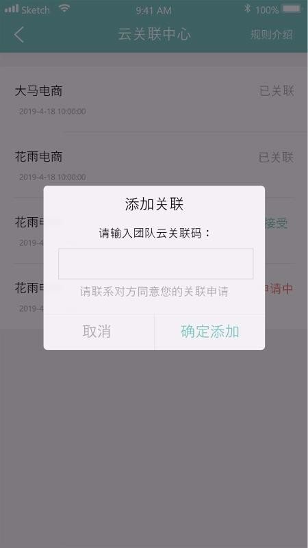 可以查看到关联账号的处理进度,掌握对方同意关联情况,查看关联团队;