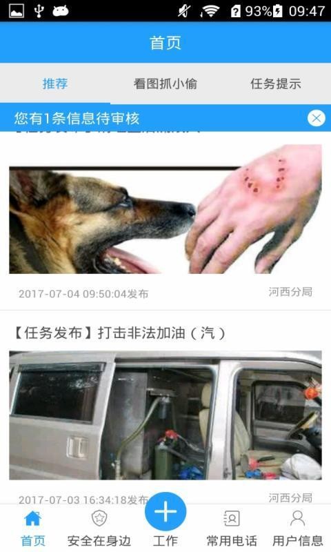 河西力量警员版是为警员设计的线上办公app,每次进入首页的时候即可直观的了解自己的工作内容,信息审核、任务部署以及创建用户的工作事务可以在这里及时的处理,非常的方便。因为警员版与大众版是对应的,所以一旦有人发布求助信息的话警员就能及时的发现,并且可以在地图上找到对方的位置,这样的话就能及时的解锁对方于水火之中,也能有效的增强安防的力量,更好的保障人民的生命财产安全,对维护社会治安也非常的方便。当警员使用这个线上办公app安卓版的时候能够获得一个通讯录,在通讯录之中可以找到自己的常用电话。
