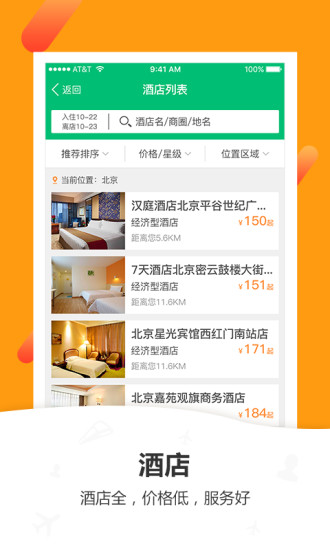 功能亮点:简单查询:简洁明了的傻瓜查询界面,让您随时随地查所有酒店、车次、航班;