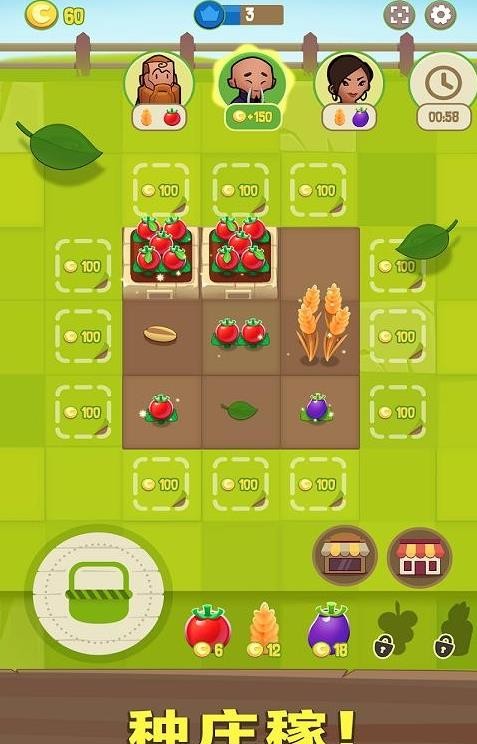 2、独特创新的游戏模式,收获作物时,会出现一个小游戏,点击的数量越多获得的作物越多。