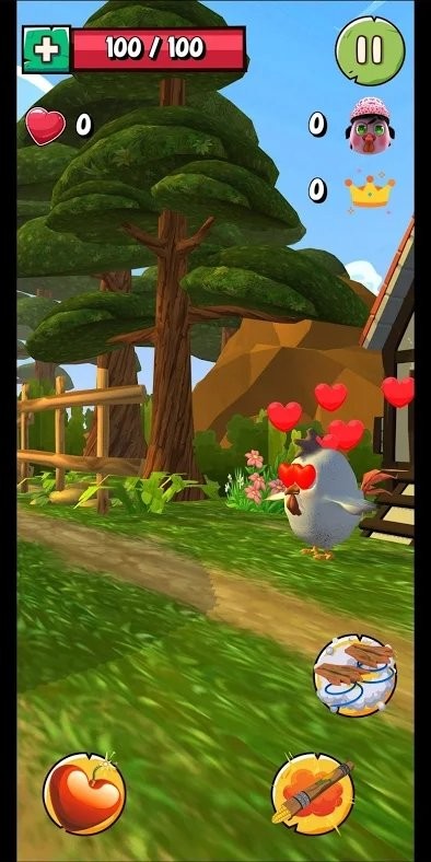 1、结合了传统的竖版跑酷玩法,躲避沿途的障碍物,追到前面的母鸡,这样你就能获得胜利。