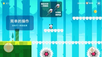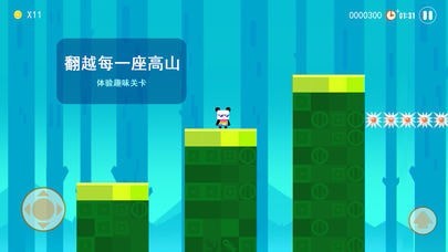1、将横版过关与熊猫相结合,可爱趣味的游戏元素,通过跳跃、奔跑通过关卡