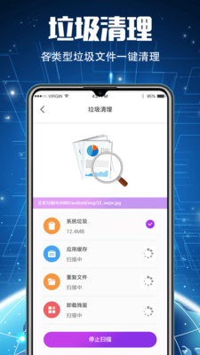 优化扫描效率,提高清理速度,360度无死角清理,让手机洁净如新,不耗电。