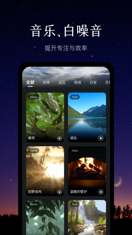 3、精选声音 — 聆听大自然的美妙,身心沉浸其中。
