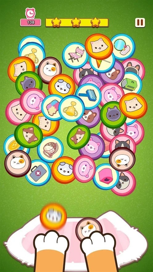 3、查找并匹配相同的猫块,匹配所有的猫块以清除游戏,让您的猫咪收到您作为奖励的物品。