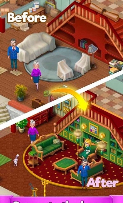 ●惊人的游戏玩法:合并恢复和装饰豪宅所需的物品,并参与这场难忘的冒险