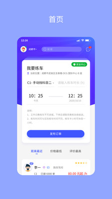 2、简便预约:自主更换教练,保障学员学车进度,结束后对教练作出评价