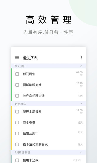 5.清晰分类:添加清单或文件夹来管理任务,还可以通过标签来分类,同时可以设置优先级区分任务的重要程度。