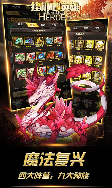 挂机吧英雄手游让所有玩家都能够轻松的体会挂机的乐趣,有近十个种族可以供玩家自由挑选加入,全员魔幻风的模型设计让游戏更加充满了神秘的未知色彩。在游戏中只需要设置好补给品和技能释放方式,就可以轻松的在后台从白天挂到黑夜,上线一看,神装都装不下背包啦!复古又具有暗黑气息的地图,在里面可以随时调兵遣将配置好阵容感受轻松挂机体验!