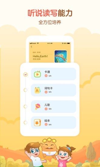 2、针对儿童优化的语音系统跟读纠错,掌握听力和口语能力情况;