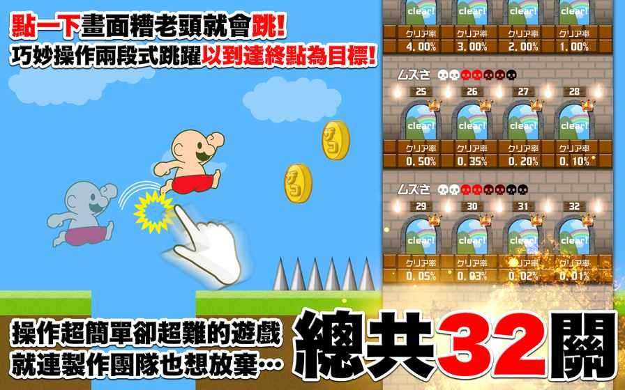只需触控的简单操作超好玩!共32个超难破的关卡等着你!