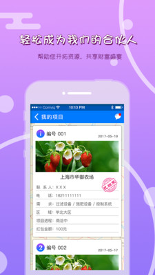 软件是您和华维集团信息反馈的直通渠道,帮助您与我们随时、随地就目标项目进行沟通、信息交流,帮助您客户解决实际需求。会让您的客户更加相信您是个值得信赖的朋友。更为关键的是,我们已愿意分享自身资源,为您的销售业绩贡献一份力。再也不每天去看自己中的东西会不会死了,每天拿起手机就能看到大棚的情况真方便啊。