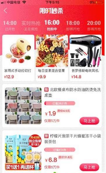 1.整点的时候还会有限时的秒杀的活动,大额的优惠活动,买到就是赚到;