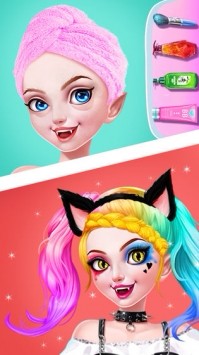 1、卡通可爱的游戏画风,融入了全新的吸血鬼主题,万圣节之际,系统为你准备好了各类的化妆品和服装