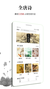 全唐诗app是一款以唐诗三百首为关键的古诗词学习app,着眼于提升当今中小学生的古诗词把握量;这里系统软件已经将全部古诗词资源开展了精确的区划,例如将古诗词依照学习培训环节来区划为幼儿古诗、小学古诗等,将资源依据创作者来区划,这样一来在你查寻古诗词时就能快速寻找总体目标;手机软件出示学习培训服务项目,如果你选定古诗词并进到学习培训网页页面后就可以阅读文章到古诗词全文。