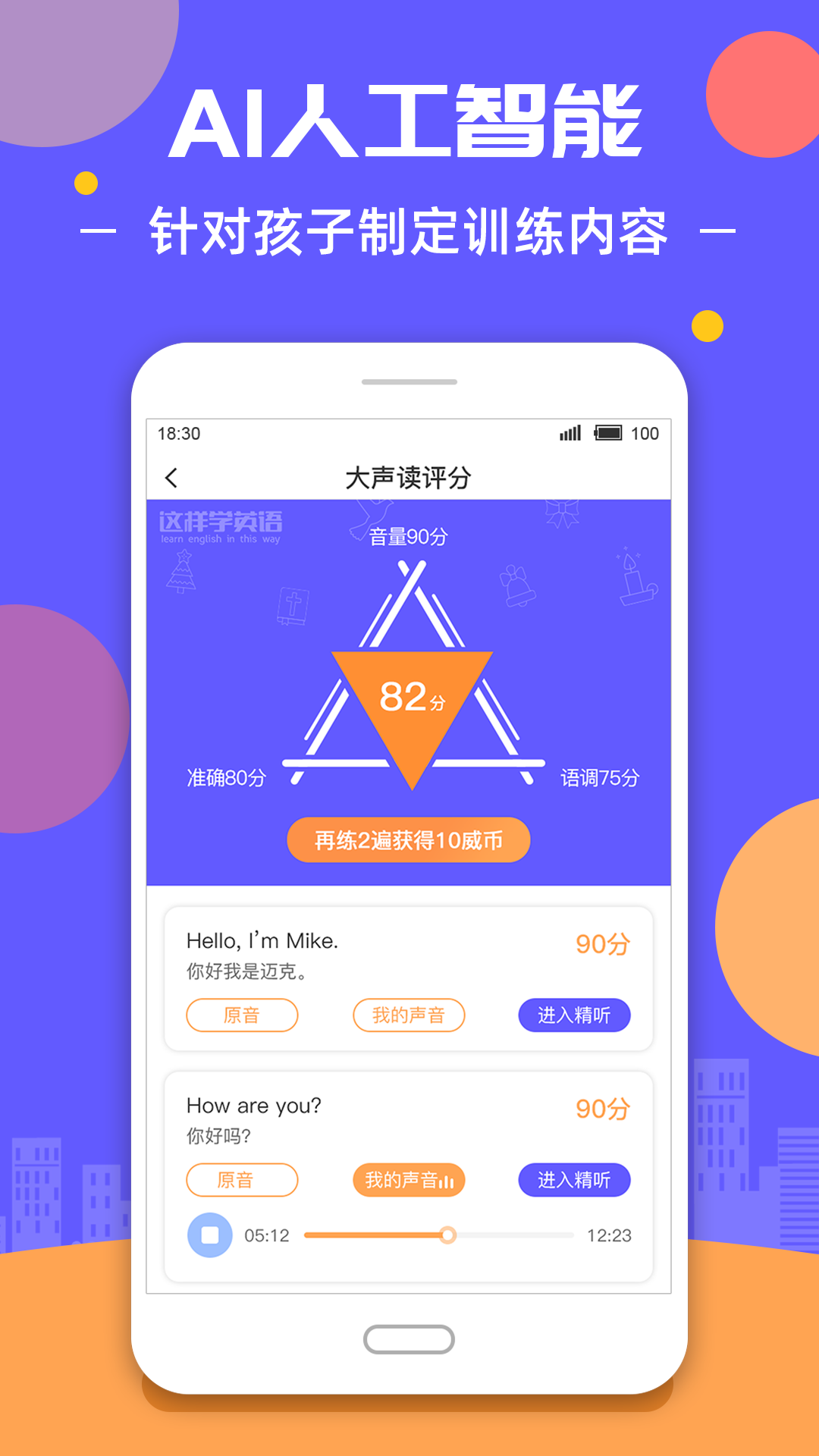 3.快速帮助用户达到“口语好、单词牢、轻松学、超自信、兴趣高”的训练效果!