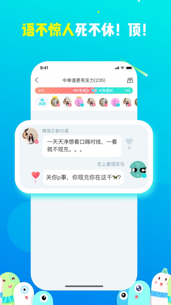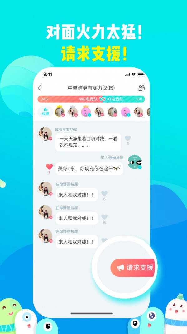· 对线群 :你的围观,发声和加入都会为你所在的战队提供充足的活力。