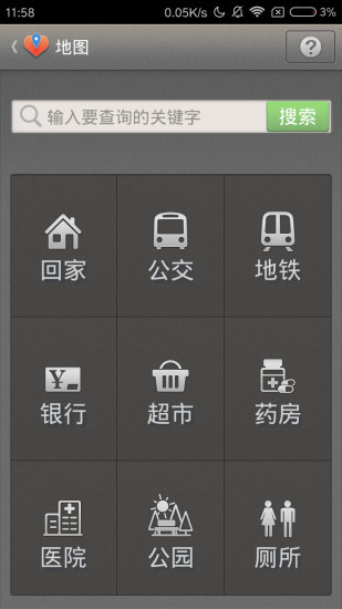 3、老人地图:专为老人而优化的地图查询功能,一键查询老人和目的地之间的最优路线