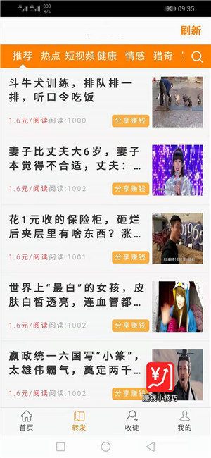 3、超全的资讯文章,手机在线阅读分享,即可收益
