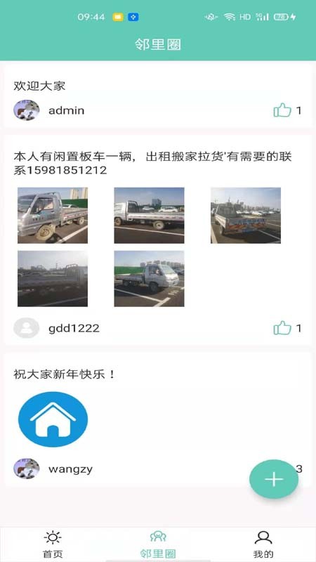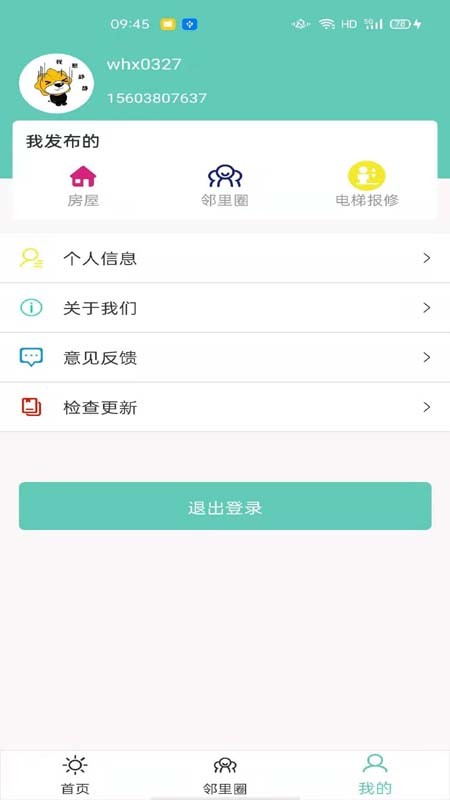 3、提供多种我发布的管理功能,该栏下有房屋、邻里圈以及电梯报修等管理功能;