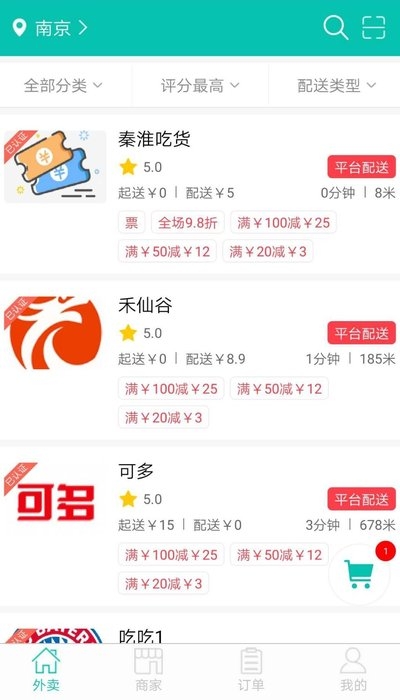 3、品质外卖:秦淮吃货app选择品牌餐厅,干净放心。