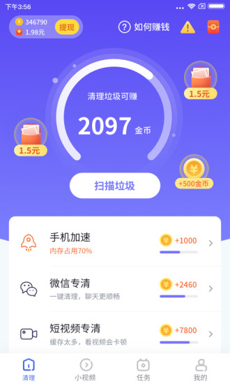 3、智能清理、系统优化,让你的手机重换青春,拒绝卡慢,从此开启