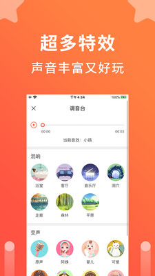 各种好玩的变声音效,机器人变声、男变声、女变声等等。