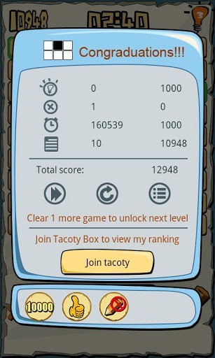 2. Hint:当你觉得走投无路的时候,选择一个空格,点击右上方的灯泡,答案会自己出现哦!请注意:使用Hint会影响最后得分!