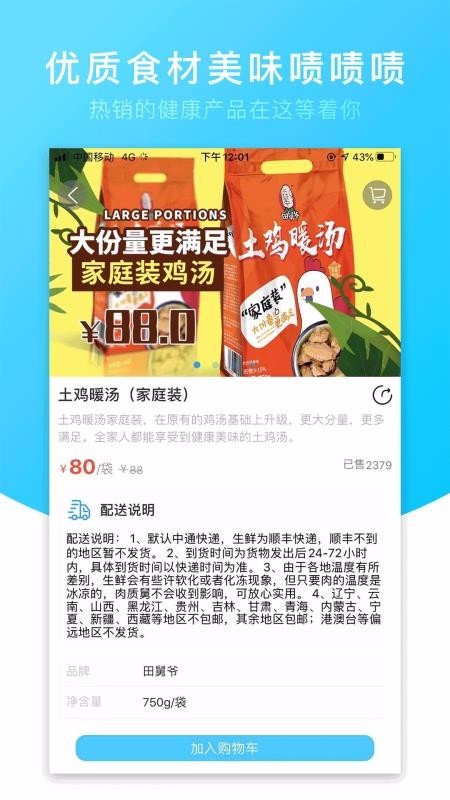 丰富多彩全方位的营养食品供您选择,可以随意选择商品,在服务平台提交订单购买;清楚的记录每一笔订单信息,可以立即查看订单建立时间、订单信息购买查询等;智能化消息推送优质商品,都是大家认可的营养健康食材,助推大家购买优质营养健康品。