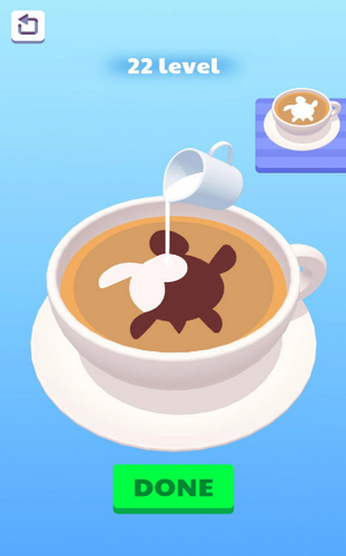 咖啡拉花是一款很有趣的很有意思的模拟咖啡制作游戏,在游戏中玩家将会拥有一家咖啡店,你的任务就是制作咖啡,满足到店顾客的需求,为自己的店铺带来收益,还可以通过学习拉花技术来扩大收益,让自己的店铺越来越好,玩家将扮演咖啡大师用完美的手艺来冲泡饮料,最后用白色的牛奶来勾画图案,用美味的饮料让所有进来的顾客开心。制作新的口味来吸引更多的人前来购买,提升自身的技术很关键。