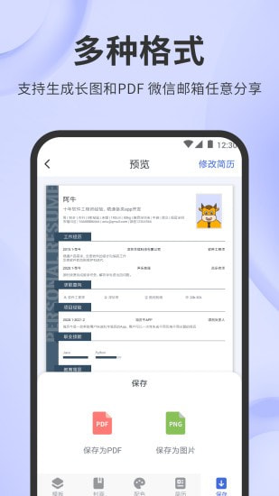 2、支持多个保存方式,你可以发布简历为电子版本;