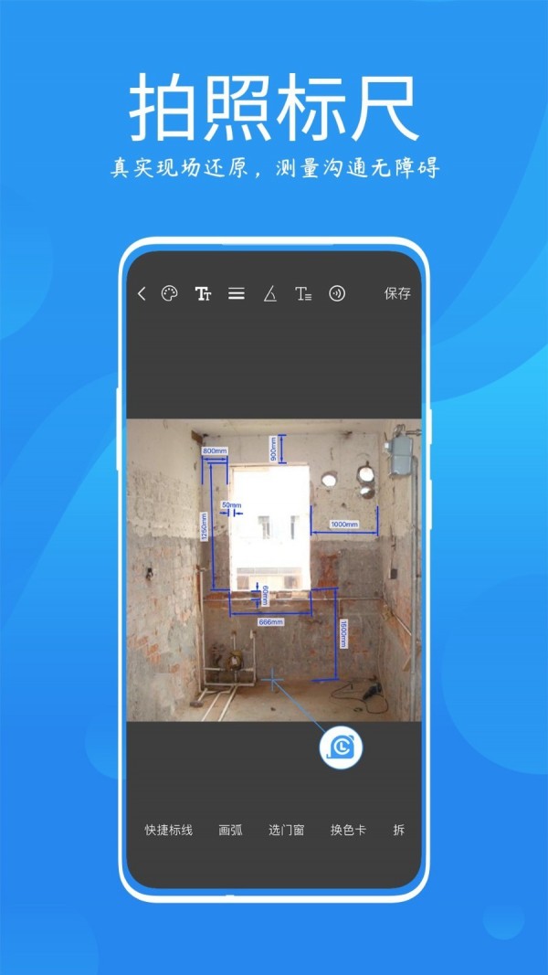 拍照测量,支持在项目详情中点击拍照测量工具来测量项目内容;