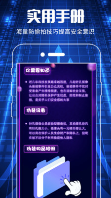3、在线学习防偷拍技巧,提高安全意识,轻松解决各类场景偷拍问题;