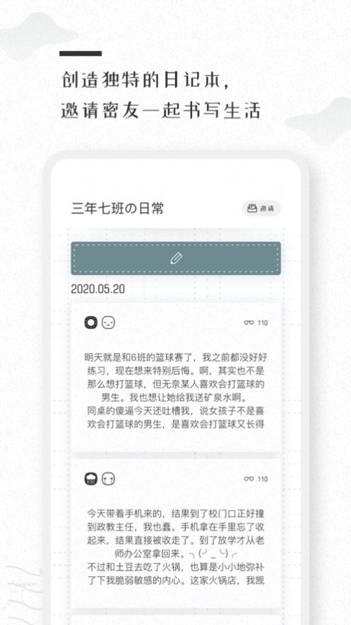 创建日记本:创建属于自己的共享日记本,将交心的密友拉入其中,分享彼此间的生活与秘密。
