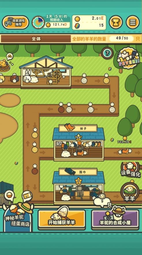 2、建设更多工坊,利用羊毛制作周边商品,强化升级工坊,获取更多销售额!