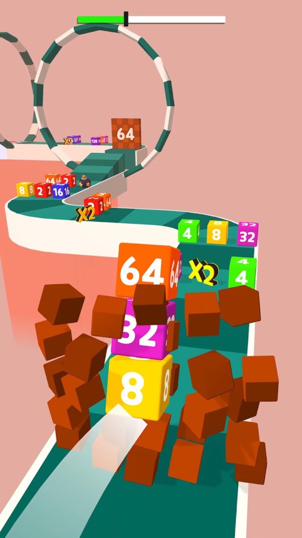 3、独特融入2048玩法元素,滑动控制着你的角色跑酷前进,收集沿途的方块来合成更高的数字;
